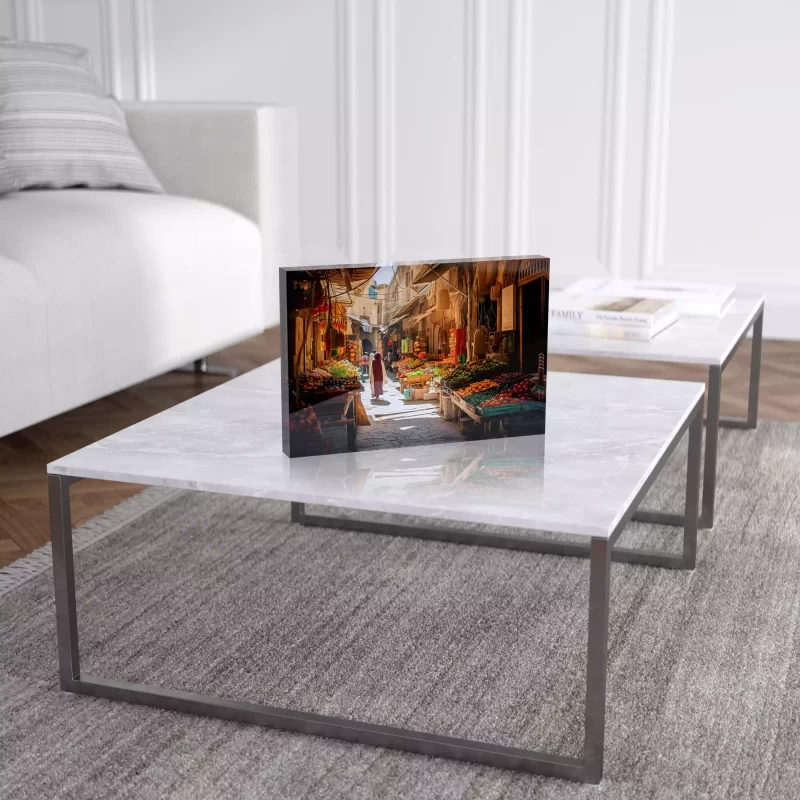 Illuminate your surroundings with the timeless charm of our exquisite glassbloc featuring an Arab lamp adorned with a flickering candle. This captivating composition captures the essence of cultural richness, craftsmanship, and the warm embrace of tradition.