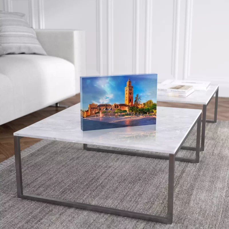 Perfect for admirers of cultural diversity, lovers of historical charm, or those seeking a visual journey through the spirit of the Old Medina, “Medina Marketplace Mirage” is a luminous fusion of tradition and contemporary artistry. Bring the soul of the ancient marketplace into your space with this exceptional glass bloc poster, celebrating the rich history and vibrant energy of the Old Medina town center.